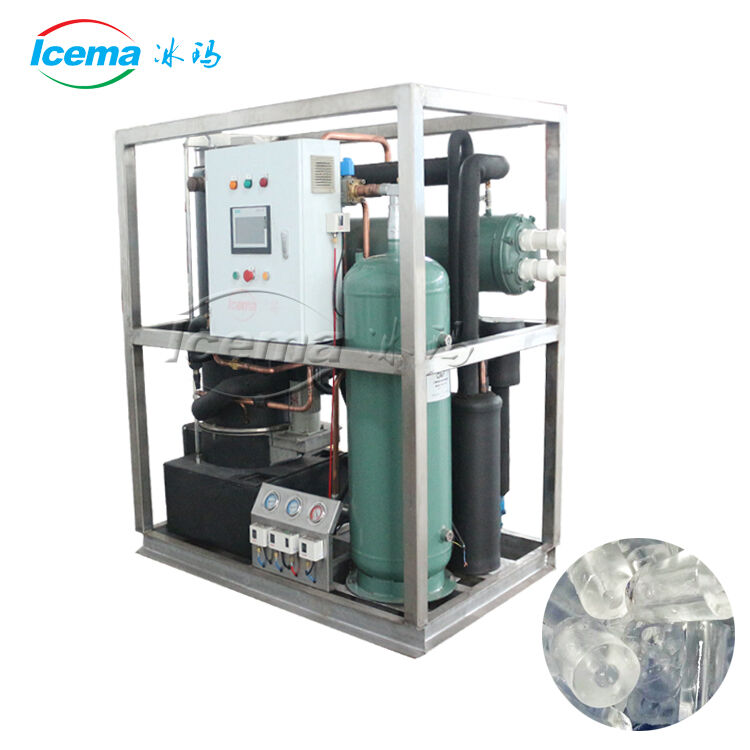 A máquina de tubo ICEMA é dividida em máquina de gelo em tubo pequena (1~5 toneladas) e grande (mais de 10 toneladas) de máquina de gelo em tubo grande.Produto AcabadoO que é gelo em tubo e qual sua vantagem?O gelo em tubo é um gelo de formato cilíndrico com núcleo oco e é livre de pó. Comparado com o gelo em flocos, o gelo em tubo apresenta um tempo de derretimento mais longo, sendo mais adequado para resfriar coisas em ambientes não isolados. Além disso, é sólido e menos propenso a gerar aglomerados de gelo, tornando-o adequado para entrega de longa distância.Por que escolher a máquina de gelo em tubo ICEMA?